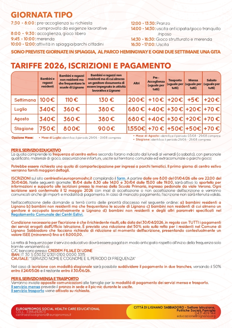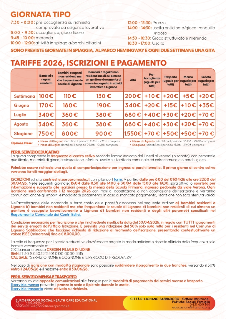 Questo è il nuovo portale del centro estivo di Lignano. Cosa desideri fare?